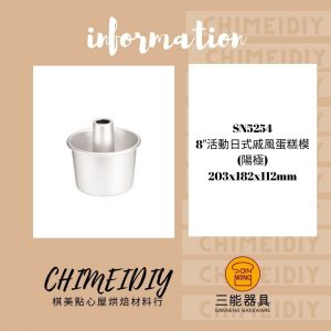 SN5254 8″活動日式戚風蛋糕模(陽極) 203*182*112
